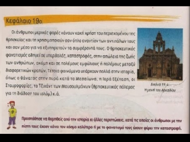 — Στην εικόνα βλέπετε πως χαρακτηρίζεται στα βιβλία του δημοτικού ο αγώνας των Ελλήνων για ελευθερία: Ως «αποτέλεσμα θρησκευτικού φανατισμού»!