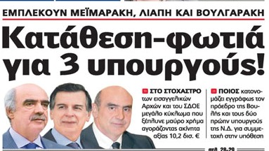 Εμπλέκουν τον πρόεδρο της βουλής και δύο πρώην υπουργούς της Ν.Δ σε υπόθεση ξεπλύματος μαύρου χρήματος!!