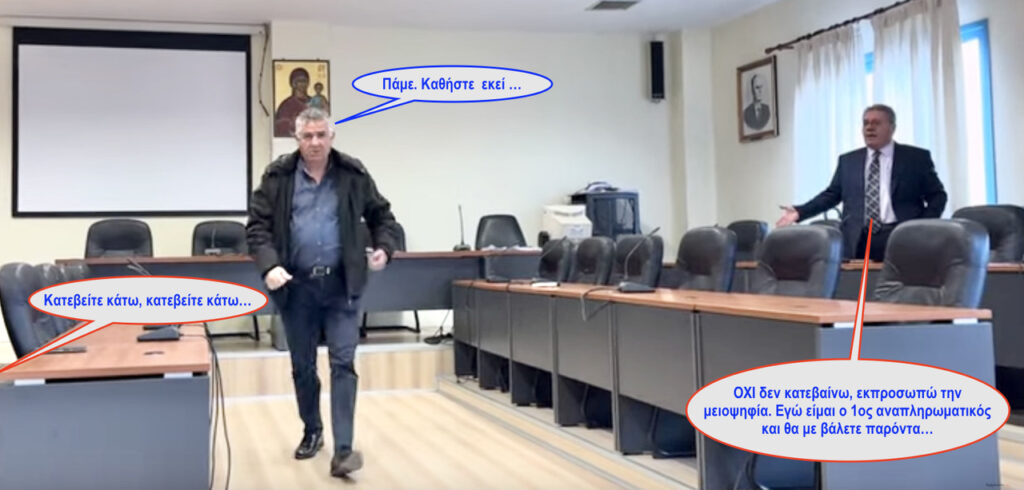 Ο «αντάρτης» αναπληρωματικός ήθελε ντε και καλά να κάθεται στα έδρανα της αίθουσας των συνεδριάσεων του Δημοτικού Συμβουλίου και όχι στα καθίσματα του κοινού.