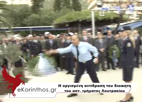 Λίγο αργότερα ο αστυνομικός διευθυντής Λουτρακίου κ. Χαράλαμπος Τετράδης όταν κλήθηκε να καταθέσει στεφάνι και εμφανώς σε έξαλλη κατάσταση, το πέταξε από μακριά στο μνημείο φωνάζοντας «ντροπή σας» προς το μέρος των πολιτικών που παρακολουθούσαν από την εξέδρα των επισήμων.