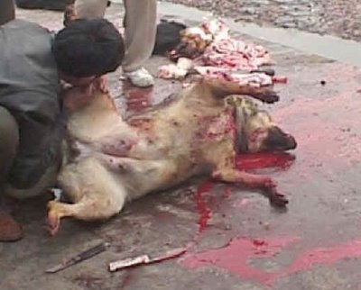 Σκυλιά σκοτωμένα, κρεμασμένα ανάποδα σε ένα φρικιαστικό αυτοσχέδιο παζάρι «κρέατος» στην οδό Αγησιλάου στο κέντρο της Αθήνας. Αυτό καταγγέλλουν τα…
